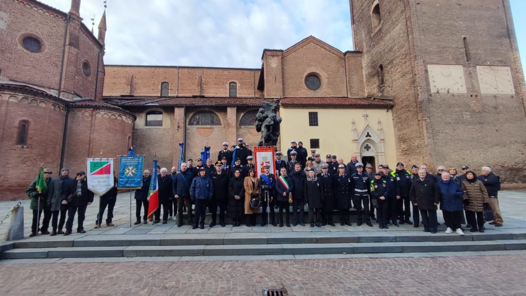 Dopo il ritrovo nel cortile del municipio, un corteo con la partecipazione del sindaco Sicchiero e degli assessori Carillo e Giordano ha percorso Via Cottolengo e in Piazza Duomo ha reso omaggio al Monumento ai Caduti. Poi la messa in Duomo e gli interventi delle autorità all’auditorium Chiosso.