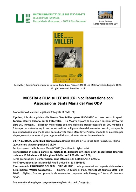 Pino Torinese. Venerdì 23 gennaio visita alla Mostra su Lee Miller con l’associazione Santa Maria del Pino.