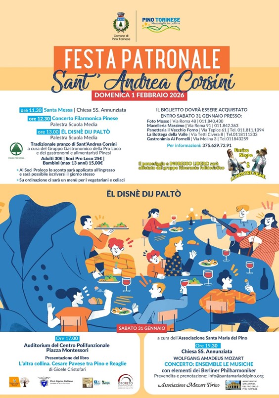 Pino Torinese. Tutte le iniziative per la Festa di Sant’Andrea Corsini. Sabato 31 gennaio e domenica 1° febbraio.