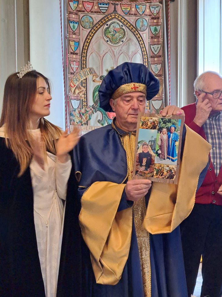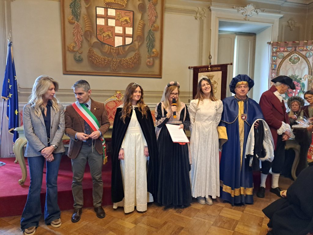 A Chieri, sabato mattina nella Sala Consiliare del Comune, la consueta investitura della Bela Tessioira, Michela Ronco e del Mangiagrop, Giovanni Fasano che dà l’avvio al Carnevale Chierese.