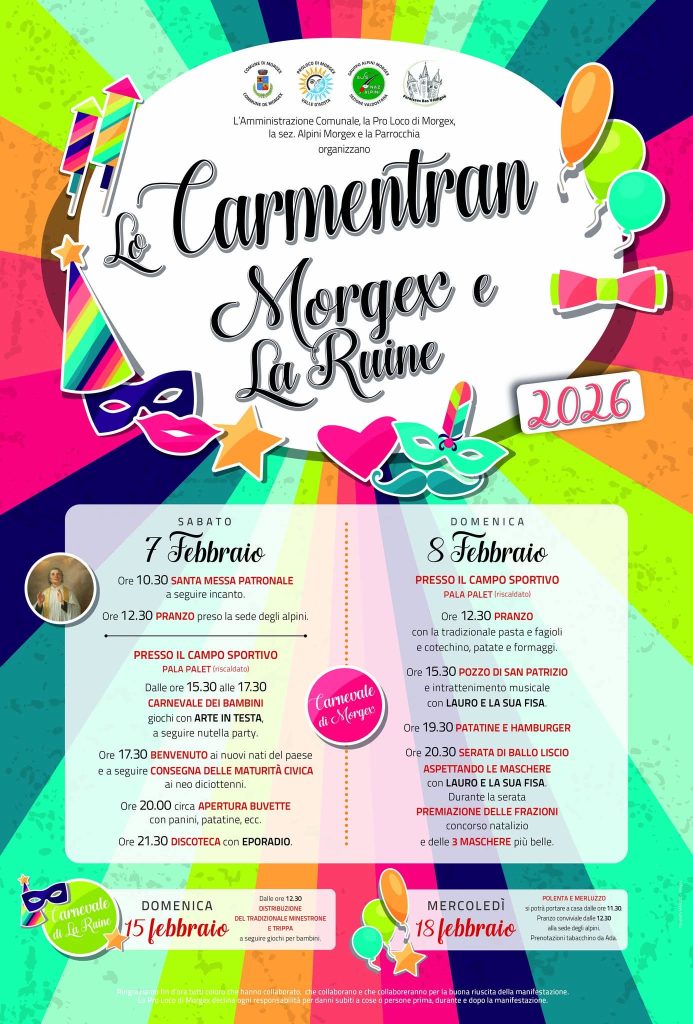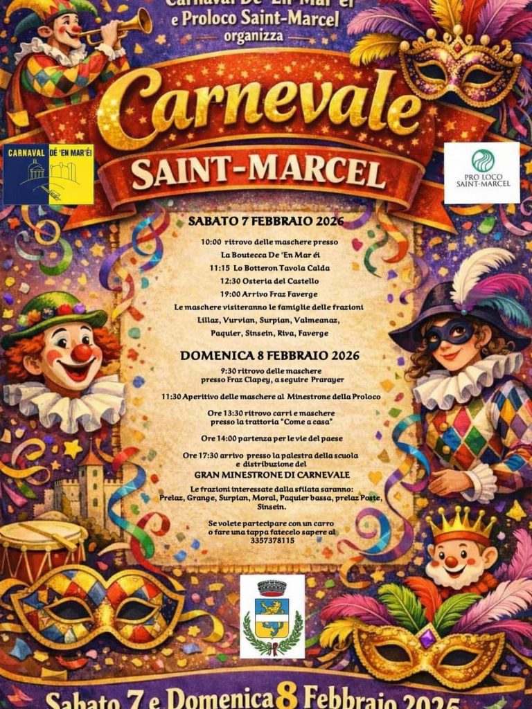 SAINT-MARCEL (AO). Sabato 7 domenica 8 febbraio “CARNEVALE 2026”.