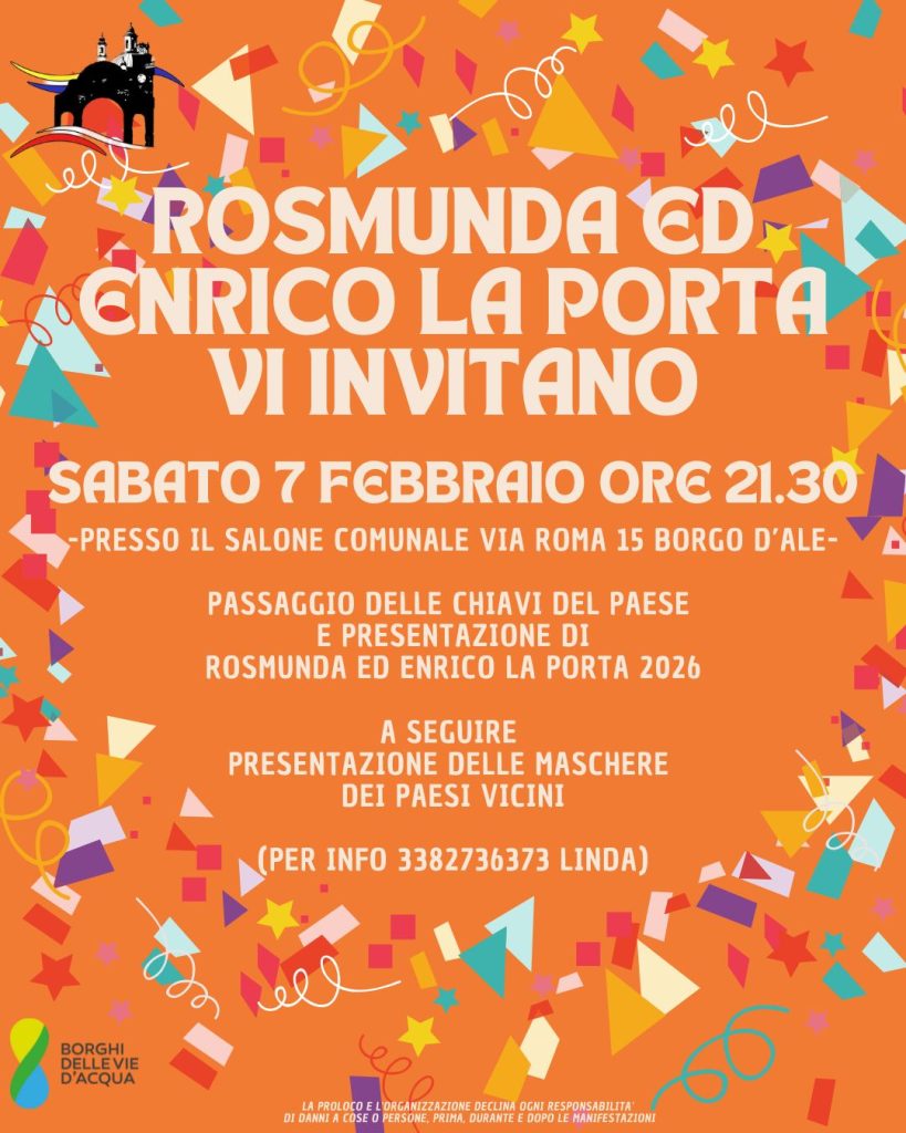 BORGO D’ALE Sabato 7 febbraio “Presentazione di ROSMUNDA ed ENRICO LA PORTA”