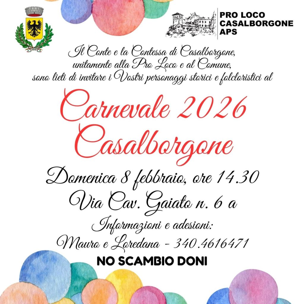 CUCEGLIO (TO). Dal 31 gennaio al 8 febbraio” CARNEVALE 2026″