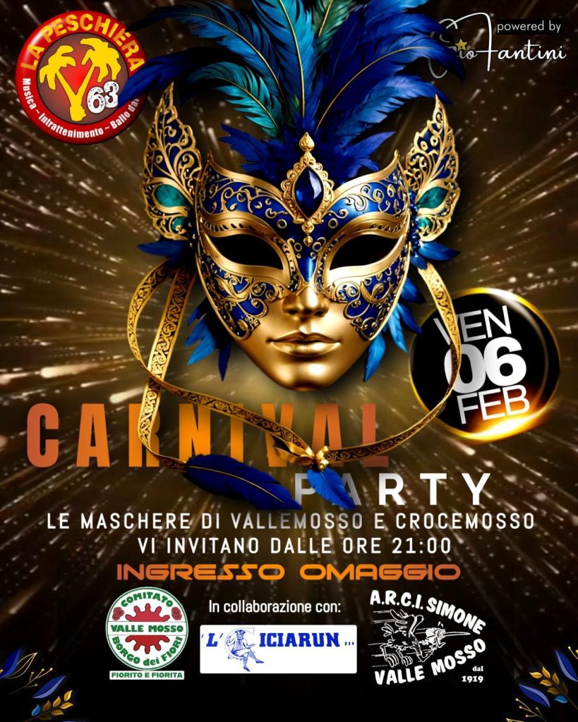 CROCEMOSSO – VALLEMOSSO . Venerdì 6 febbraio “CARNIVAL PARTY”