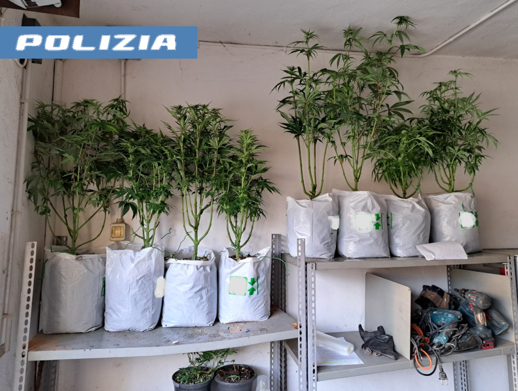 Nel corridoio dell’abitazione venivano rinvenute due serre con 21 vasi contenenti piante già pronte e germogli di marjuana di varie altezze e foglie essiccate. Nel box doccia venivano recuperati diversi prodotti utilizzati per la coltivazione come fertilizzanti, terra, contenitore a led, sacchetti in tela per setacciare le piante e altri prodotti chimici.
