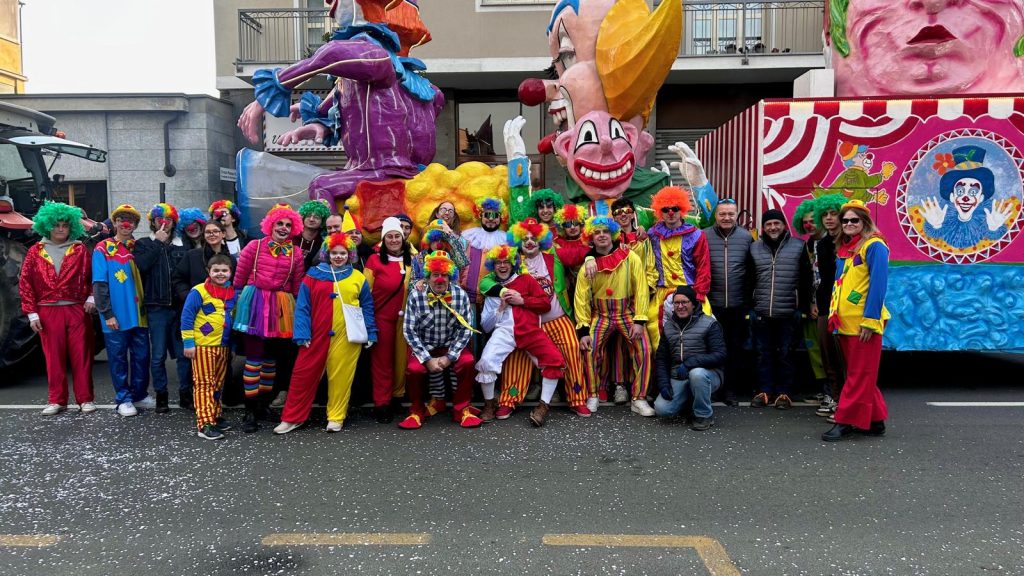 Si parte: è il debutto per il carro di Chieri dei ‘Clowns’, oggi alla sfilata carnevalesca di Nichelino. Ecco il gruppo che lo accompagna…