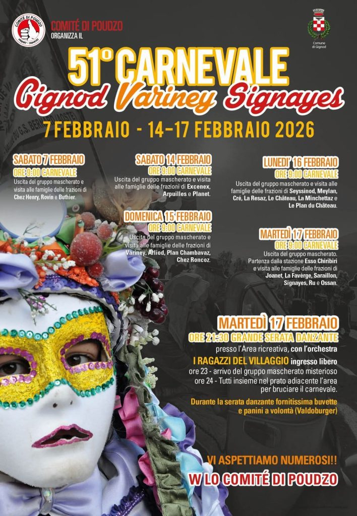 GIGNOD (AO). Dal 7 al 17 febbraio “CARNEVALE a Gignod, Variney e Sagnajes”