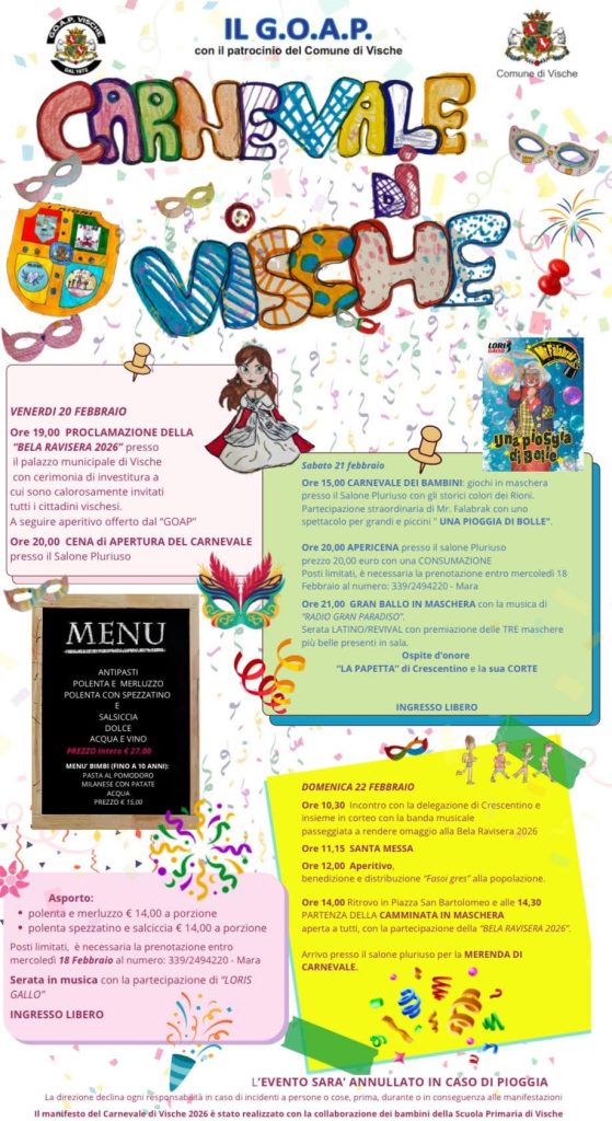 La sfilata di Carnevale inizialmente fissata per sabato 14 febbraio è stata posticipata al sabato sabato 21 febbraio 2026