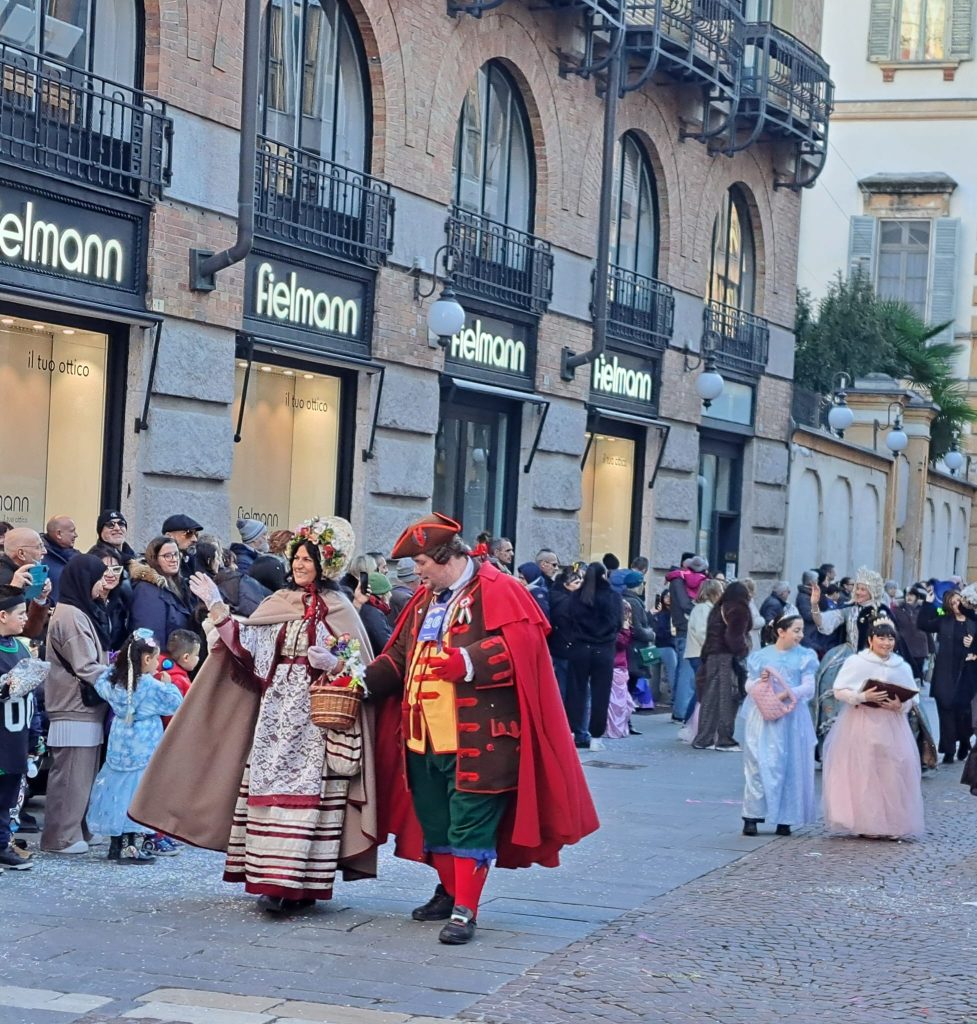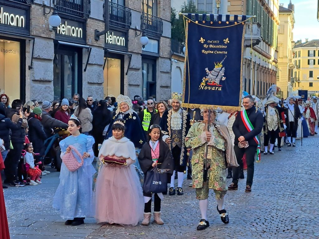 Domenica di festa per le vie e le piazze di Novara. In scena il Carnevale, con la magia di Mariano Navetta e la lunga sfilata dei gruppi mascherati provenienti da tutto il Piemonte ma anche da altre regioni italiane. Le maschere novaresi Re Biscottino e la Regina Cunetta hanno accolto e guidato i gruppi ospiti (tra i quali Giandoja e Giacometta della Famija Turineisa) tra due ali di folla.