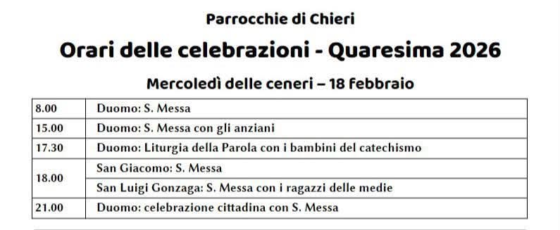 Chieri. In Duomo, San Giacomo e San Luigi Gonzaga le celebrazioni per le Ceneri di Redazione · 18 Febbraio 2026 Visto da: 137