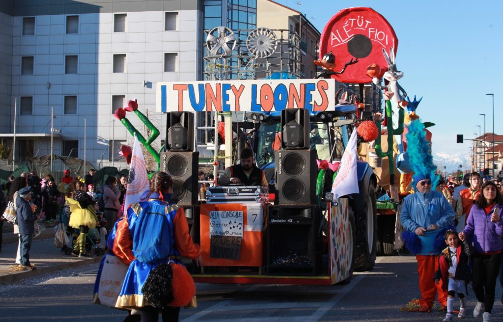 Dopo, i carri di Pinerolo, Chieri, Nichelino, Piobesi, Carmagnola, Racconigi ed a chiudere la sfilata i Looney Tunes di Bruere.