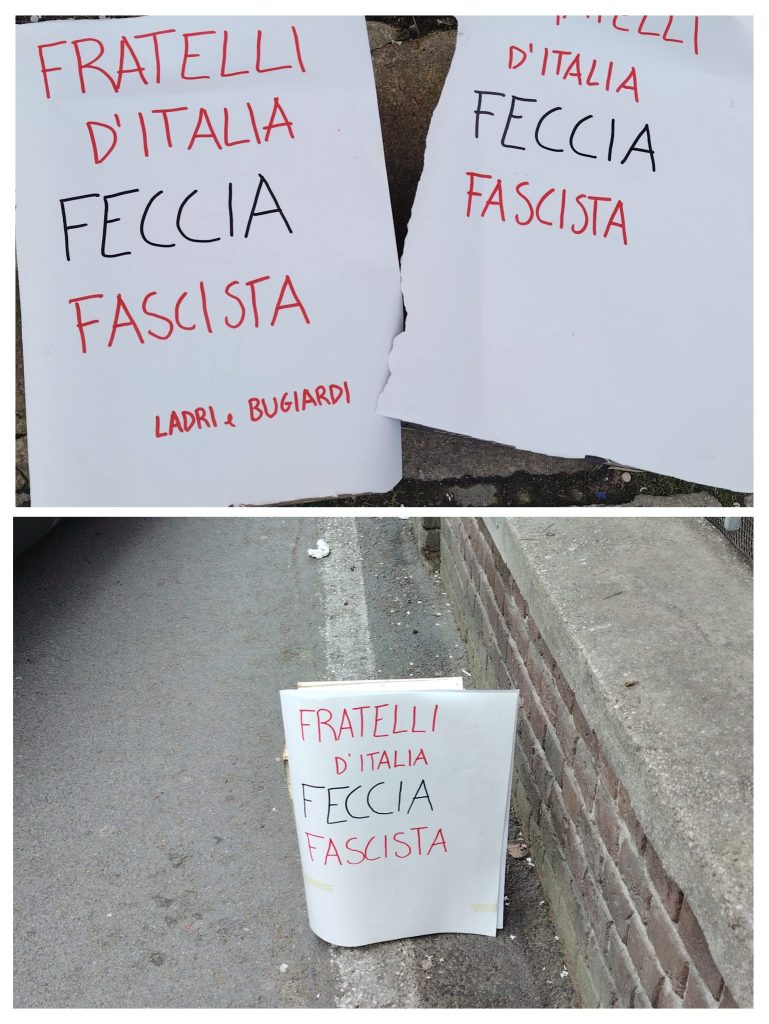 Sono intervenute le forze dell’ordine. L’episodio è stato denunciato dal partito di Giorgia Meloni attraverso un suo esponente di spicco, il presidente del consiglio regionale Davide Nicco, che ha parlato di “un clima di intolleranza inaccettabile”.