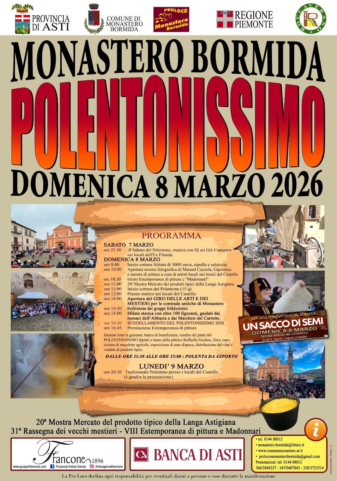 MONASTERO BORMIDA (AT) . Domenica 8 marzo “POLENTONISSIMO”