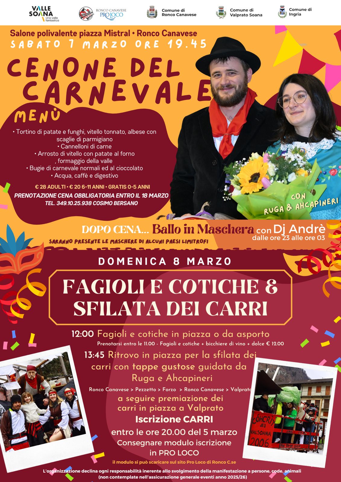RONCO CANAVESE (TO). Sabato 7 domenica 8 marzo “CARNEVALE 2026”.