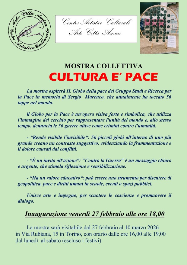 ARTE CITTA’ AMICA. MOSTRA COLLETTIVA “CULTURA E’ PACE”