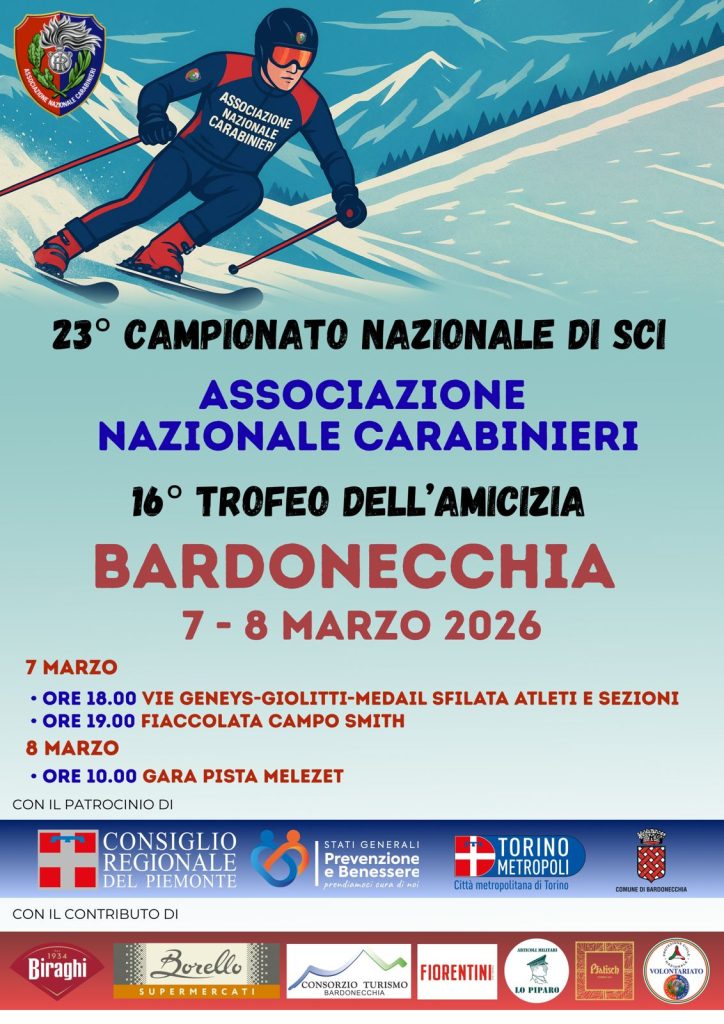 Si svolgerà sabato 7 e domenica 8 marzo a Bardonecchia il 23° Campionato Nazionale di Sci per l’Associazione Nazionale Carabinieri con il seguente programma