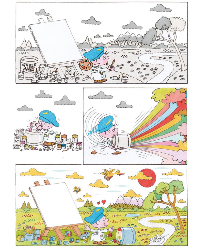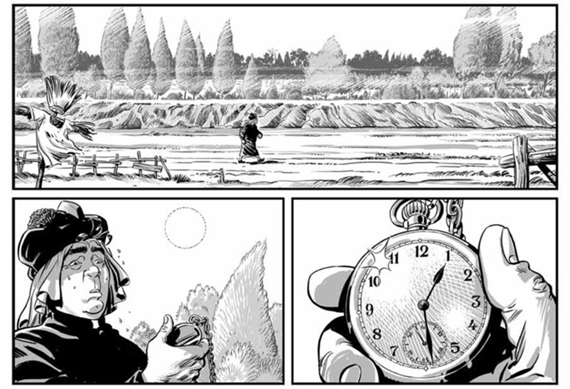 Grazie alla maestria del disegnatore Werner Maresta, ci ritroviamo immersi in un torrido pomeriggio d’agosto, esattamente come viene descritto nella colorita ed evocativa prosa di Guareschi, e anche se non leggiamo i pensieri di Don Camillo, bastano le sue espressioni e i suoi sguardi a farci capire cosa gli passa per la testa.