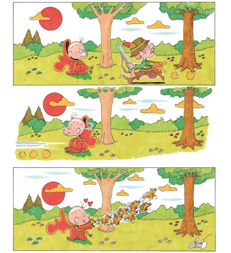 In questa rubrica sui “Fumetti senza parole”, iniziata con alcuni capolavori riconosciuti a livello mondiale come L’approdo di Shaun Tan (Tunué) e il Gon di Masashi Tanaka (J-Pop), proseguita con Le vacanze di Paperino (Panini Comics) e Love (saldaPress), la vita degli animali secondo Frédéric Brrémaud e Federico Bertolucci, la fantascienza da Moebius a Lucas Varela (recentemente ristampato in Francia), le storie d’amore di Joris Mertens, Wilfrid Lupano e Grégory Panaccione per Tunué, e dopo avere presentato le opere erotiche di Don Lawrence e Elena Ominetti, vi parlerò ora di due opere a fumetti senza parole con protagonisti religiosi: il Don Camillo di Guareschi e Fra Tino di Athos, un’ulteriore riprova di come con i no-words comics si possa affrontare qualsiasi argomento.