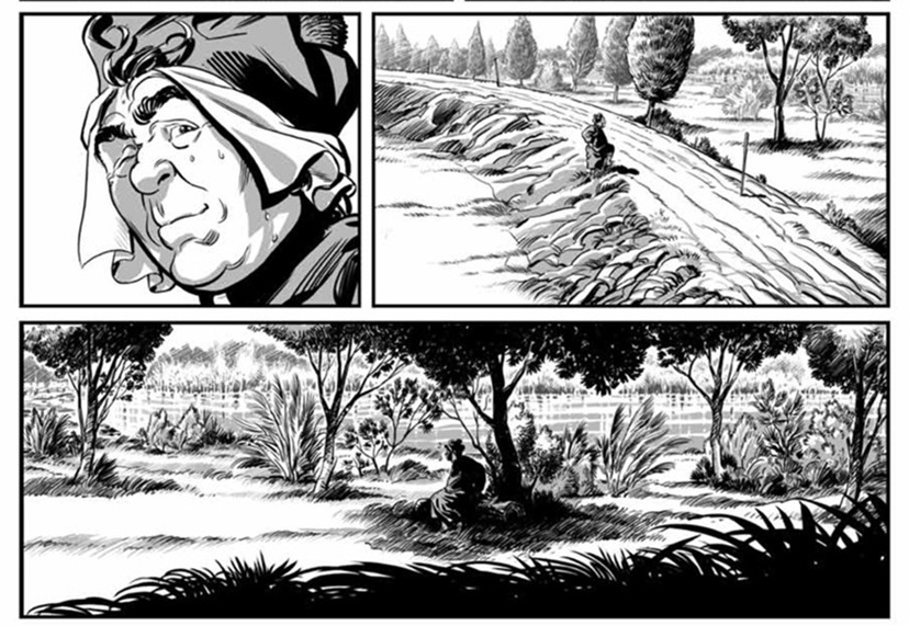 estratto da una tavola di Elena Pianta tratta dal racconto Autunno, pubblicato su Don Camillo a fumetti volume 5 “Giulietta e Romeo”