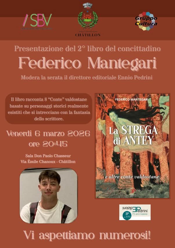 CHATILLON (AO). Venerdì 6 marzo presentazione del libro “LA STREGA DI ANTEY”.