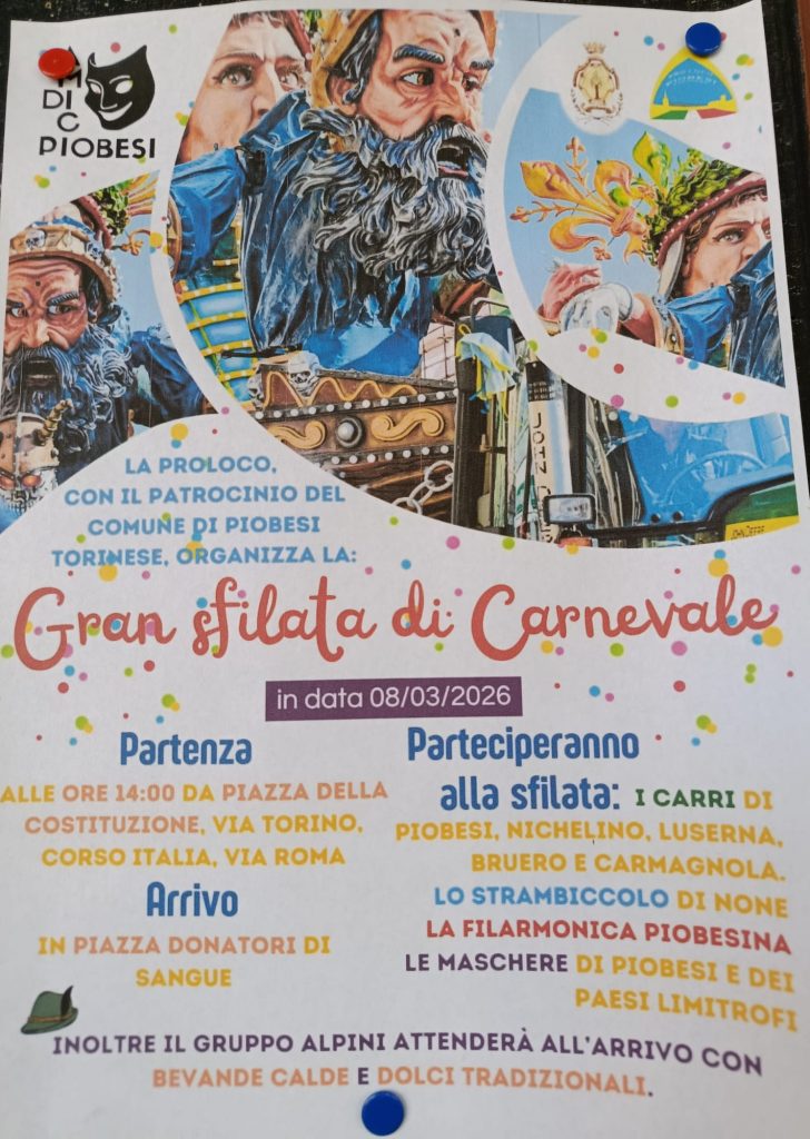 PIOBESI (TO). Domenica 8 marzo “Gran Sfilata di Carnevale”