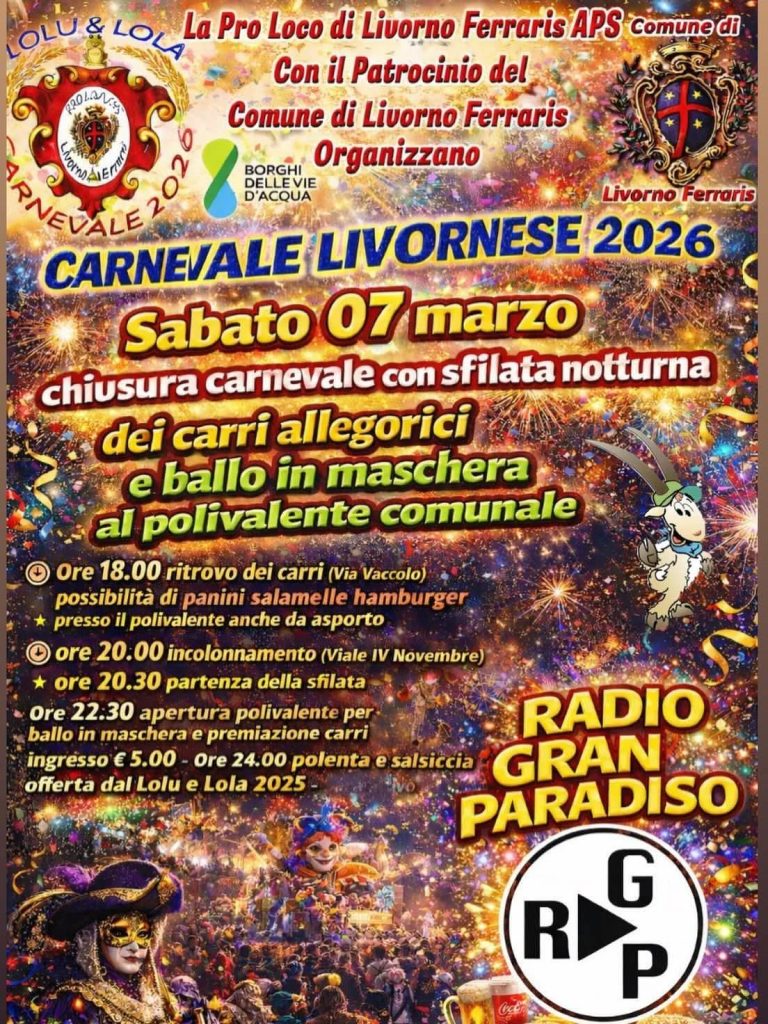LIVORNO FERRARIS (VC). Sabato 7 marzo chiusura del Carnevale con sfilata notturna.
