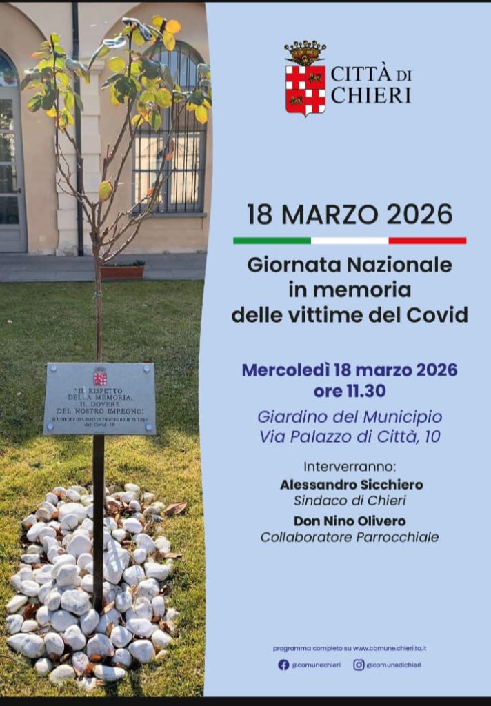 Chieri. Mercoledì 18 marzo, giornata in memoria delle vittime del Covid di Redazione · 13 Marzo 2026 Visto da: 94