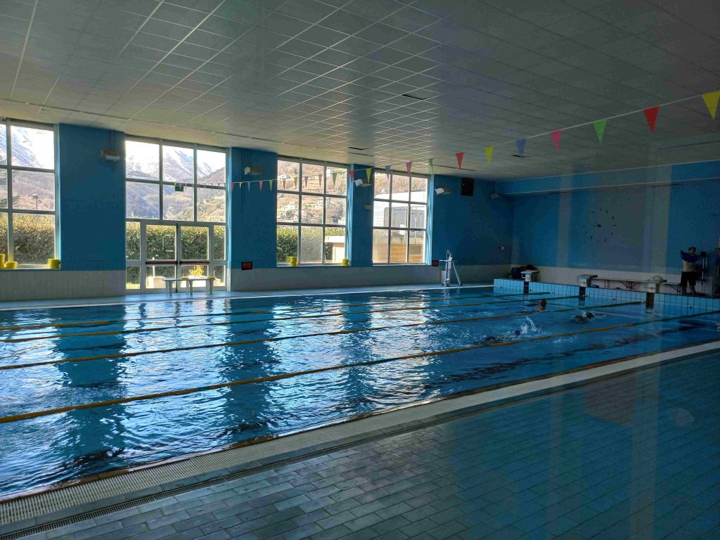 L’impianto, gestito dall’Asd Due Valli Libertas, dispone di una vasca da 25 metri ed è utilizzato per corsi di nuoto scolastici, attività dedicate alle persone con disabilità e per il pubblico.