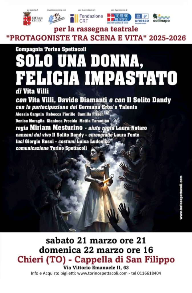 CHIERI (TO). Sabato 21 domenica 22 “SOLO UNA DONNA FELICIA IN^MPASTATO” alla Cappdella di San Filippo.