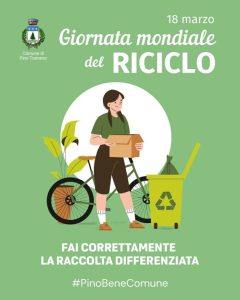 In occasione della Giornata mondiale del Riciclo, il Comune di Pino rinnova il suo impegno per l’ambiente, promuovendo buone pratiche di educazione civica dedicate alla corretta raccolta differenziata.