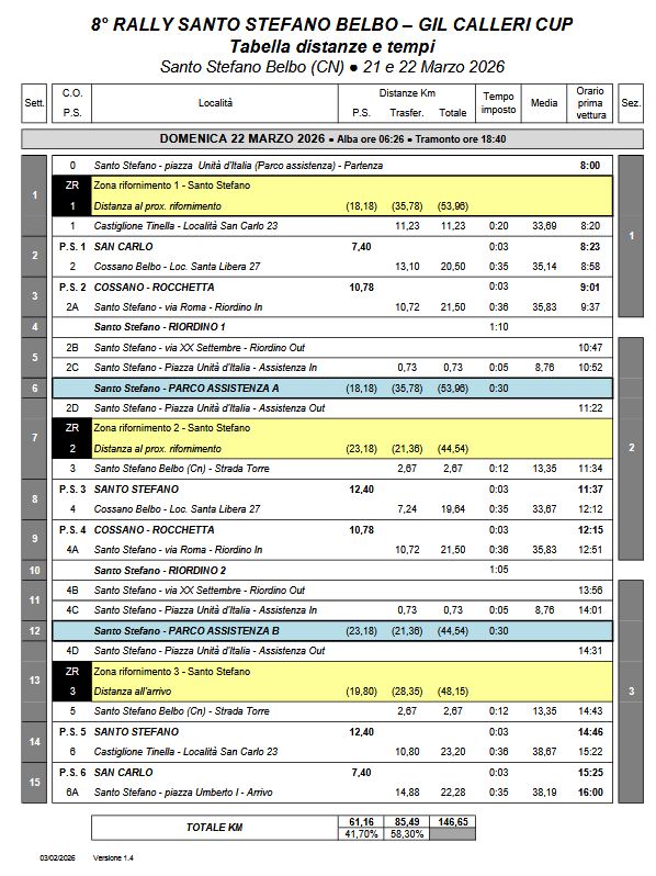– Prova Speciale 2-4 “Cossano – Rocchetta” (km 10,780) – domenica 22 marzo 2026.