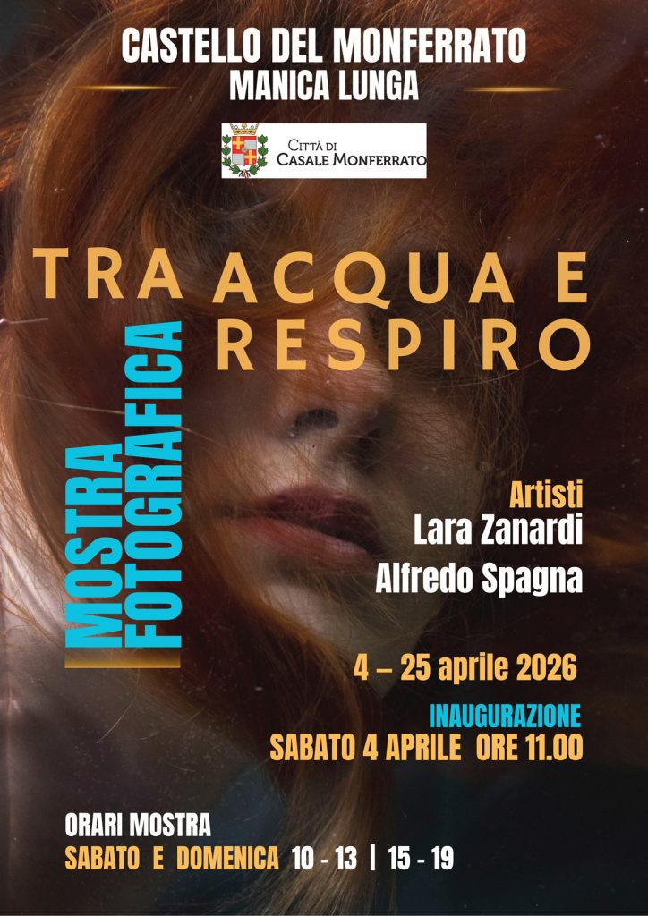 Sabato 4 aprile 2026 alle ore 11,00, nella Manica Lunga del Castello del Monferrato, verrà inaugurata “Tra acqua e respiro”, mostra fotografica degli artisti Lara Zanardi e Alfredo Spagna.