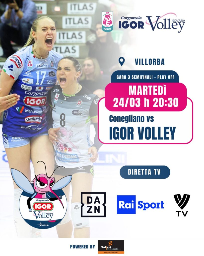 Prosegue senza sosta la serie di semifinale scudetto, per la Igor Volley di Lorenzo Bernardi che questo pomeriggio è partita per Treviso dove domani alle 20.30 sfiderà le campionesse d’Italia in carica di Conegliano per provare a riaprire una serie che vede le venete avanti 2-0. In caso di sconfitta, infatti, il percorso stagionale delle azzurre si interromperebbe definitivamente, mentre in caso di vittoria la serie tornerebbe a Novara con l’eventuale gara 4 in programma sabato alle 21.15.Il format, al meglio delle cinque partite, non offre più prove d’appello per le ragazze di Bernardi, chiamate a ribaltare il pronostico nella sfida numero 66 tra le due formazioni che possono vantare diversi ex: Cristina Chirichella (dieci anni in azzurro), Nika Daalderop e l’assistente Maurizio Mora tra le gialloblù; Federica Squarcini tra le novaresi.Il match sarà trasmesso in diretta su Rai Sport, DAZN e Volleyball World TV. Nell’altra semifinale, Milano è in vantaggio per 2-0 su Scandicci.Federica Squarcini (centrale Igor Gorgonzola Novara): “Domani servirà scendere in campo con tanta grinta, determinazione e voglia di riscatto. Sappiamo che giocare al Palaverde non è mai semplice ma dobbiamo mettercela tutta, perché per noi è l’ultima possibilità a disposizione per allungare la serie e tornare a giocarcela al Pala Igor in una eventuale gara 4”.