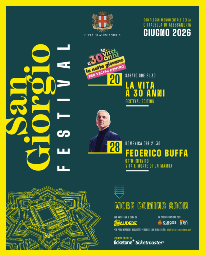 L’edizione 2026 del San Giorgio Festival ad Alessandria segna un nuovo corso organizzativo, con la cura affidata al Gruppo Audere, e si propone di rafforzare ulteriormente l’identità del Festival, ampliando e diversificando l’offerta culturale, con una proposta che spazia tra teatro, musica, narrazione e intrattenimento contemporaneo, con particolare attenzione alla qualità artistica e al coinvolgimento del pubblico.