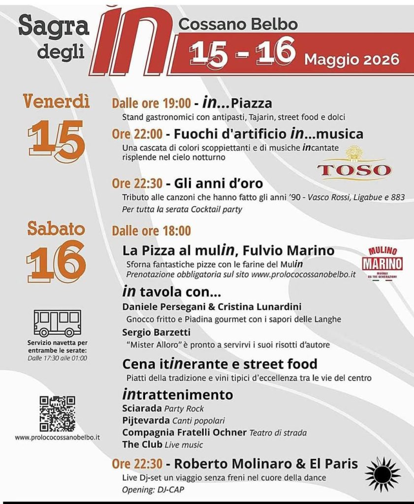 COSSANO BELBO (CN). Dal 15 AL 16 maggio SAGRA DEGLI IN
