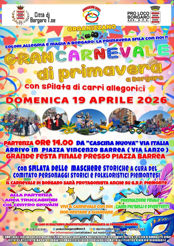 BORGARO (TO). Domenica 19 aprile “Gran CARNEVALE di PRIMAVERA”.