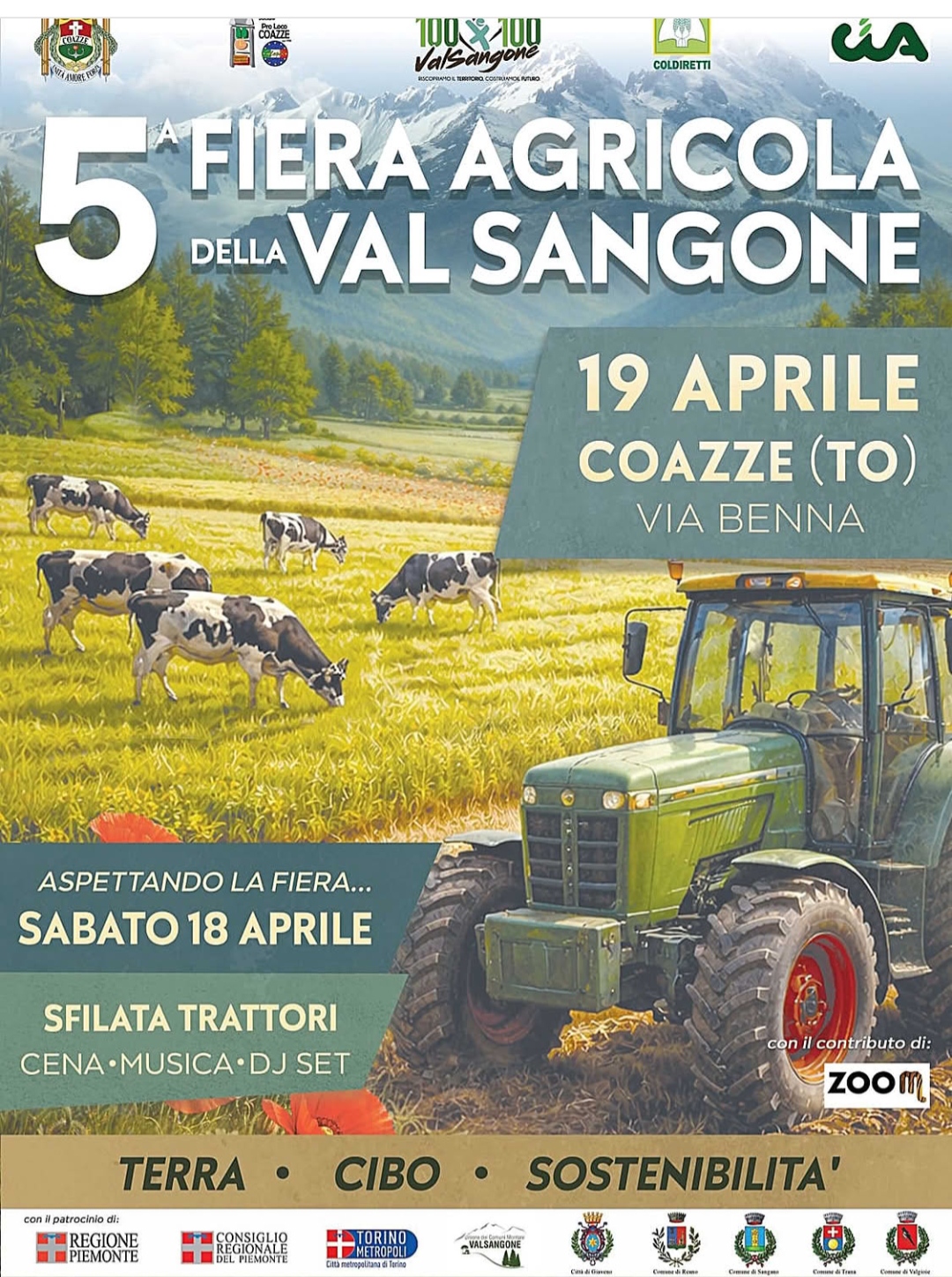 COAZZE (TO). Domenica 19 aprile FIERA AGRICOLA della VAL SANGONE