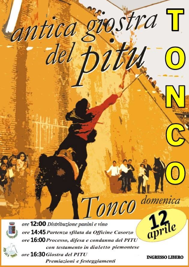TONCO (AT). Domenica 12 aprile “Antica giostra del PITU”