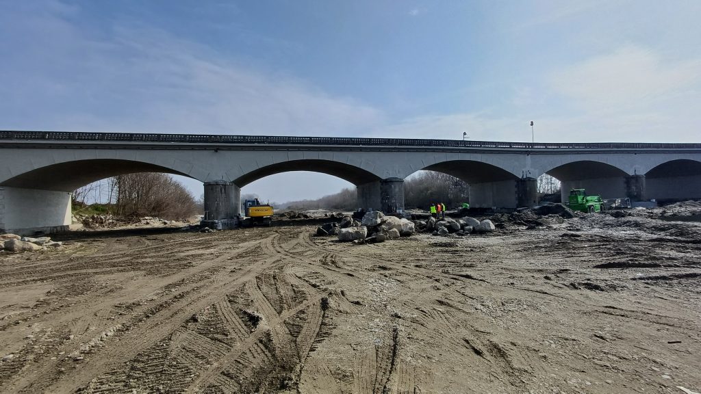 Il cantiere del ponte sul Pellice a Villafranca Piemonte, che ora si sposta sulla parte alta del manufatto, è finanziato dal “decreto ponti” (legge 145/2018) per un importo complessivo di 2.500.000 euro. Oltre alle lavorazioni previste nel progetto iniziale, si è proceduto a sistemare le fondazioni delle pile in alveo attraverso il posizionamento di massi di cava a protezione delle pile. La struttura in calcestruzzo armato delle arcate e delle pile è stata protetta con uno speciale intonaco armato con reti in fibra di vetro.I lavori sull’impalcato consentiranno di impermeabilizzare, consolidare e allargare la sede stradale con la posa di nuove barriere di sicurezza.