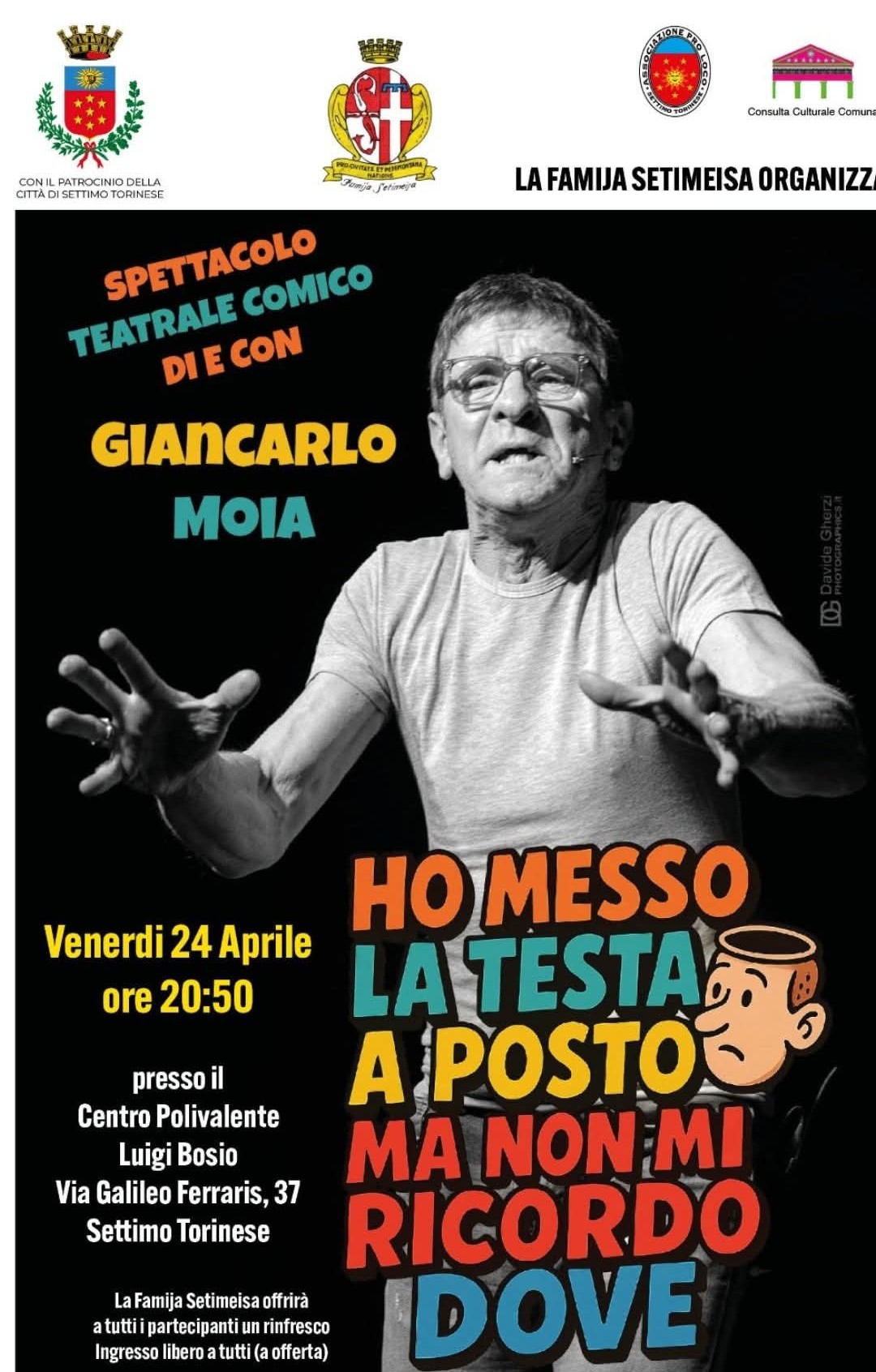 SETTIMO TORINESE . Venerdì 24 aprile “HO MESSO LA TESTA A POSTO MA NON MI RICORDO DOVE” al centro Polivalente.