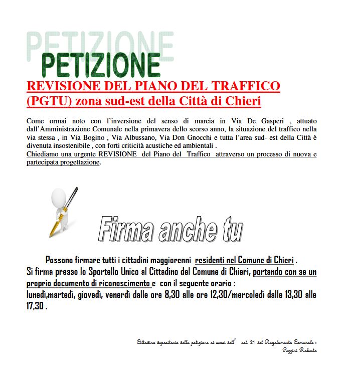 Possono firmare tutti i cittadini maggiorenni residenti nel Comune di Chieri .