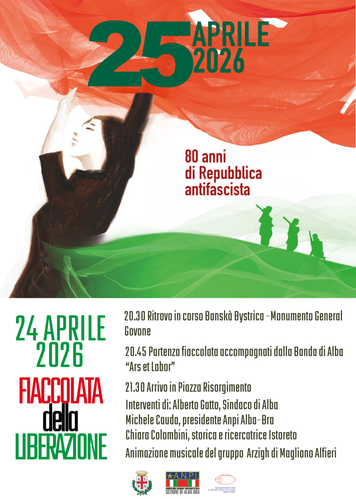 Alba celebra l’81esimo anniversario della Liberazione d’Italia, con eventi commemorativi in città e sul territorio. Il programma è organizzato dal Comune attraverso l’Assessorato alla Cultura, in collaborazione con il Centro Studi Beppe Fenoglio, l’Anpi sezione Alba-Bra, l’associazione Beato Padre Giuseppe Girotti, il Centro Culturale San Giuseppe e diverse associazioni e sodalizi locali.