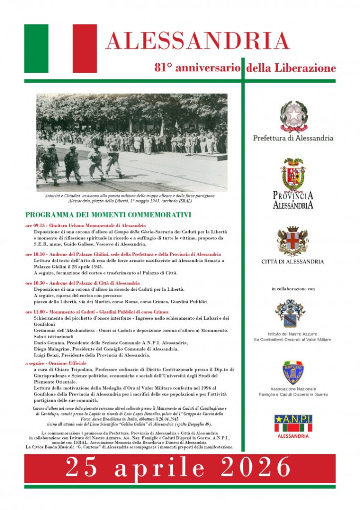 ALESSANDRIA. 81° ANNIVERSARIO DELLA LIBERAZIONE e “FESTA D’APRILE 2026”