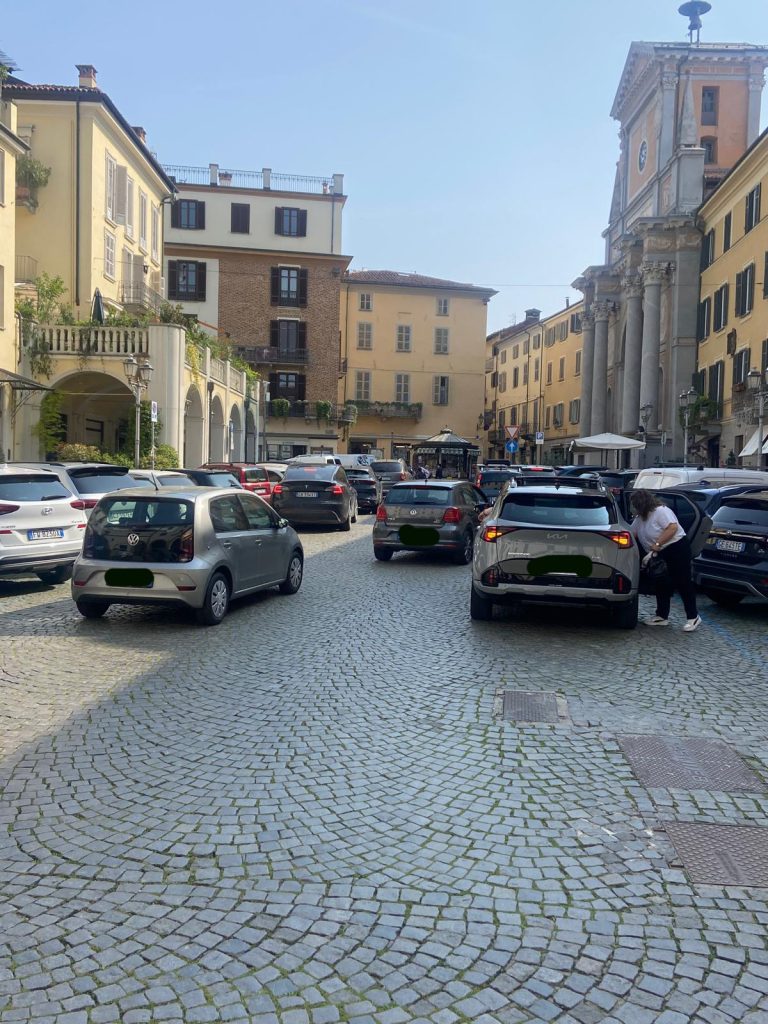 “Un tranquillo sabato mattina in centro Chieri. I parcheggi blu portano aria più salubre, meno auto in centro, facilità di parcheggio…. O no?!?!”