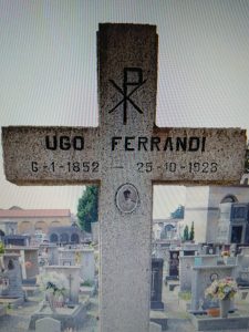 Fu sepolto nel cimitero di Novara in una tomba a terra (nella foto) per sua precisa volontà e nel suo testamento aveva anche disposto: “nessun monumento deve essere elevato sulla mia tomba. Una semplice croce latina in pietra. L’iscrizione non deve portare che il mio nome e cognome, la data di nascita e della morte e la sigla PX (PAX)”. E così fu. Ugo Ferrandi fu sepolto a terra in una semplice tomba accanto a quella della madre.