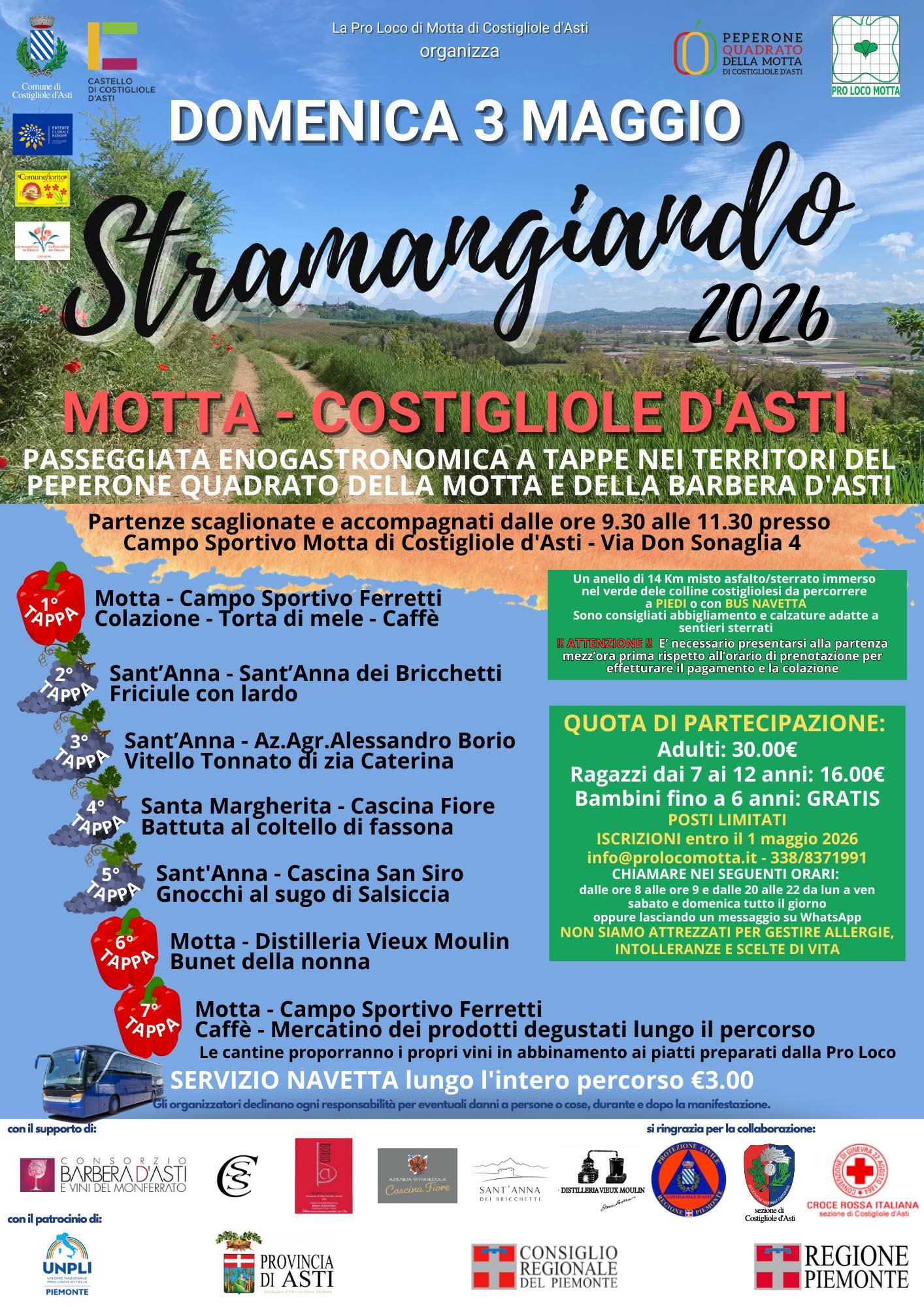 MOTTA DI COSTIGLIOLE D’ASTI . Domenica 3 maggio “STRAMANGIANDO”.