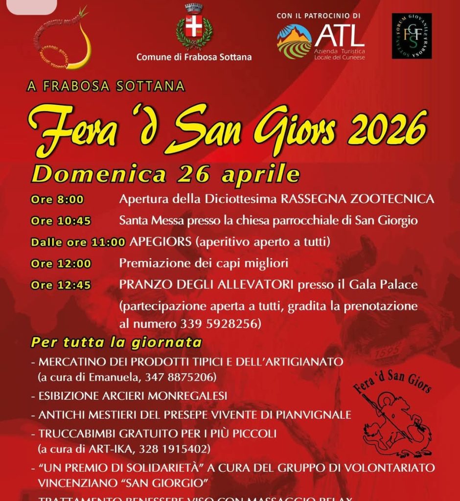 FRABOSA SOTTANA (CN). Domenica 26 aprile “FERA ‘D SAN GIORS”