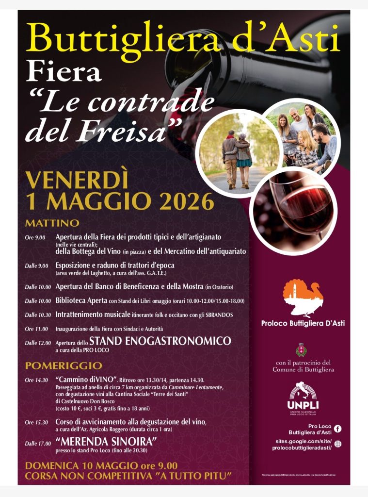 BUTTIGLIERA D’ASTI Venerdì 1 maggio fiera “LE CONTRADE DEL FREISA”