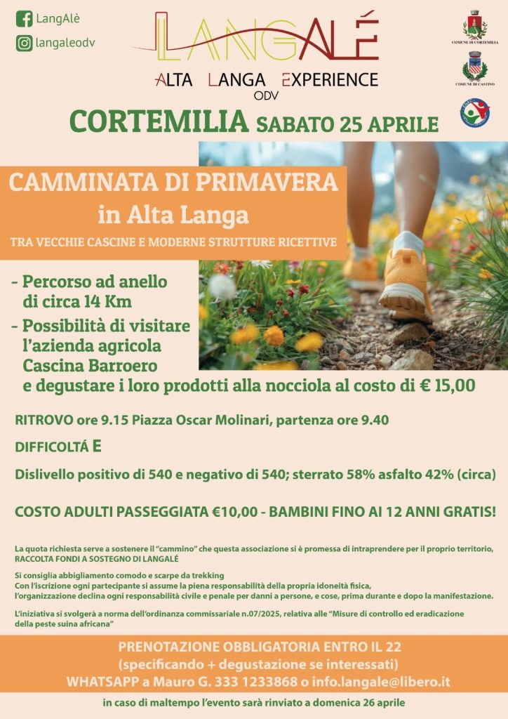 CORTEMILIA (CN). Sabato 25 aprile “CAMMINATA DI PRIMAVERA IN ALTA LANGA”.