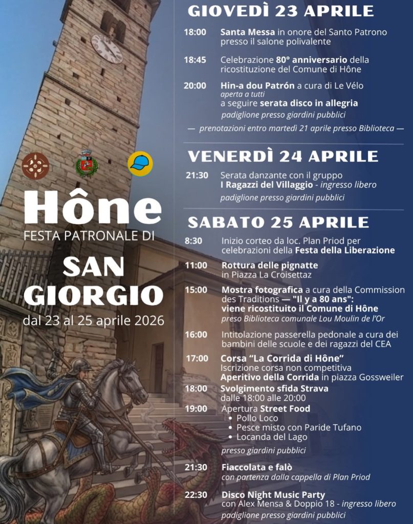 HONE (AO). Da giovedì 23 a sabato 25 aprile “FESTA DI SAN GIORGIO”